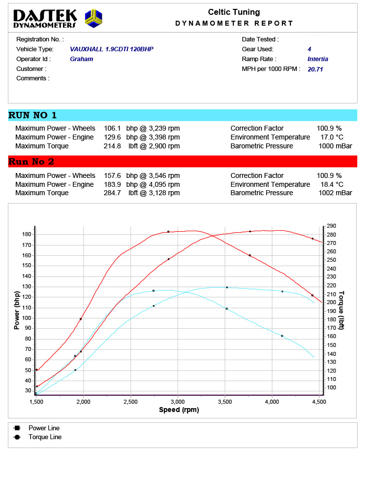 The 1.9 CDTi 120bhp is the first incarnation of the Multijet engine. Utilising multiple injections per stroke it pushed refinement and power levels to a new high. With our software upgrade we can achieve 180bhp and 283lbft torque which gives for superb performance. The 120bhp is in essence a 150bhp but detuned in the software. The majority of the power comes from the removal of limiters and the end result is achieved using only a 0.1 bar increase in boost pressure, despite being a huge power improvement it is a very safe and reliable upgrade. We have developed this engine extensively and can provide more or less power than quoted. We develop all of our software on the rolling road to ensure accuracy in terms of both power delivery and also to ensure fueling, boost pressures and exhaust gas temperatures are all within tolerance. Our aim is for maximum power whilst maintaining optimum reliability.